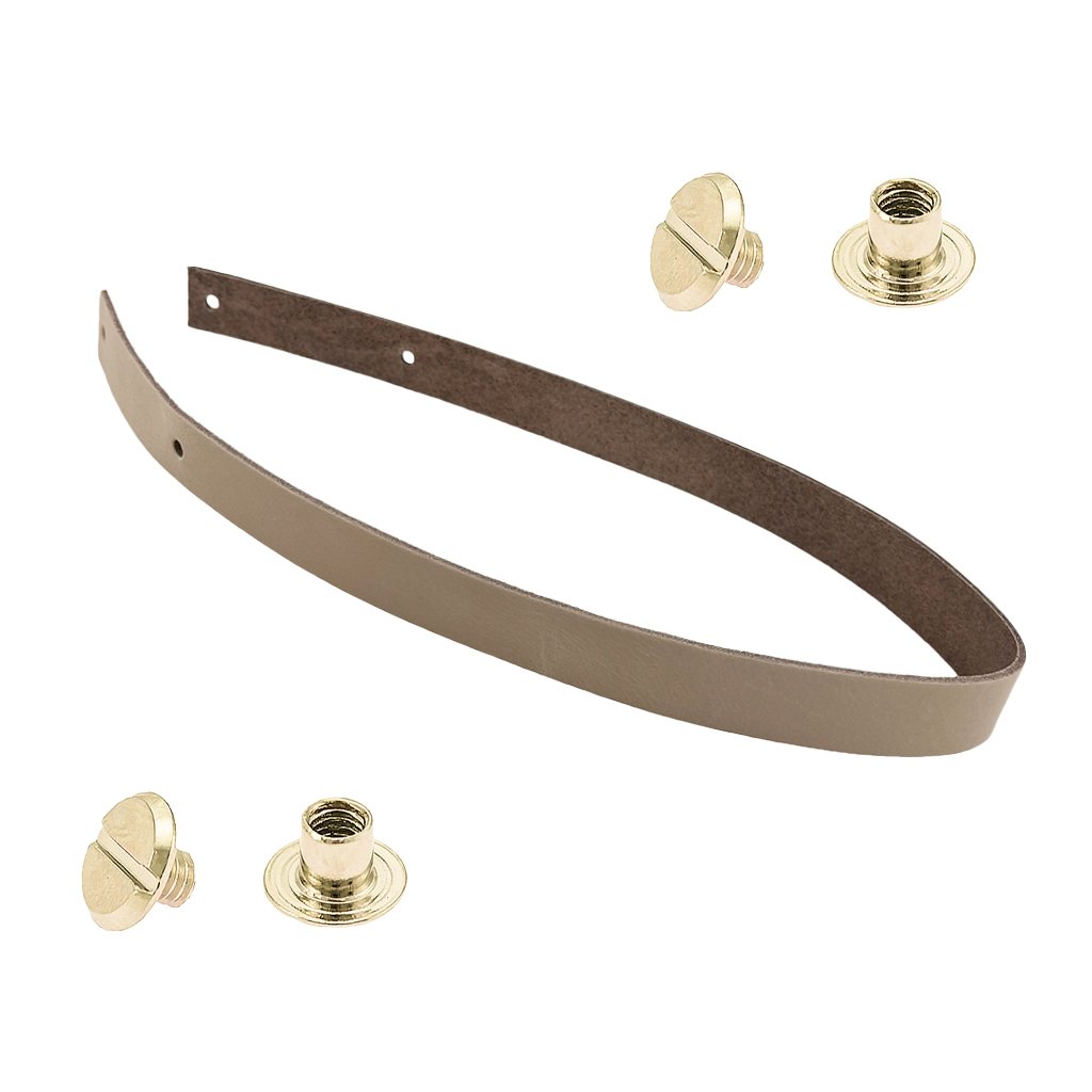 Kožený popruh o délce 72 cm je ideální pro výrobu uch k ručně šitým kabelkám, taškám nebo batohům. Po připevnění šroubovacích nýtů dosahuje výsledné délky cca 62 cm.