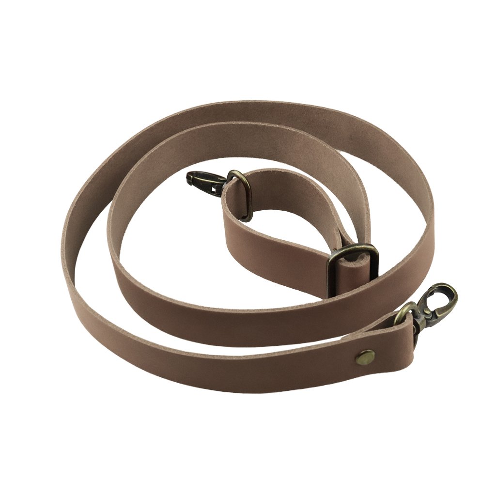 Sada kožený popruh posuvný 122 cm š. 2 cm bílá káva staromosaz