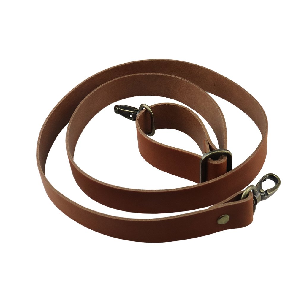 Sada kožený popruh posuvný 122 cm š. 2 cm hnědý staromosaz
