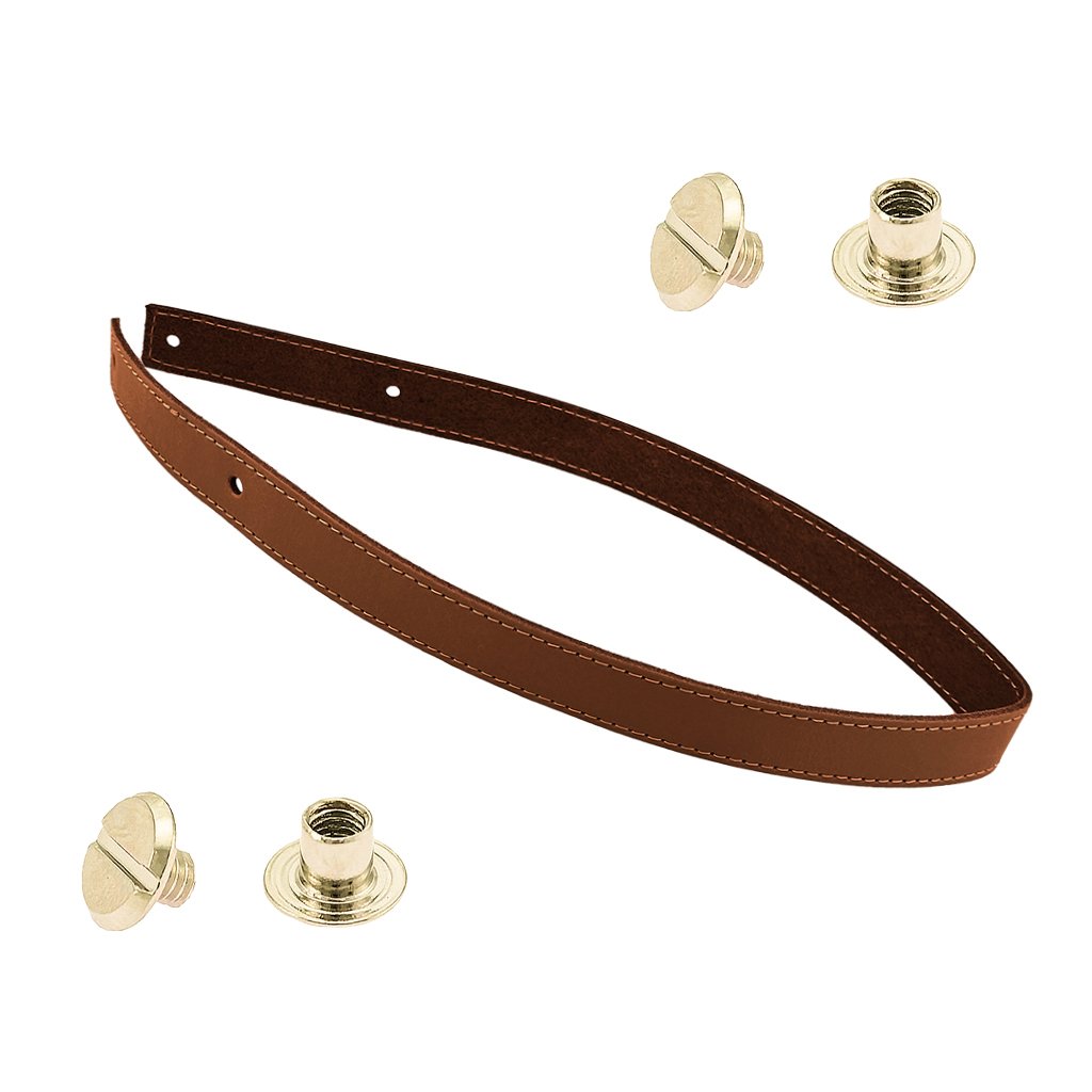 Kožený popruh o délce 72 cm je ideální pro výrobu uch k ručně šitým kabelkám, taškám nebo batohům. Po připevnění šroubovacích nýtů dosahuje výsledné délky cca 62 cm.