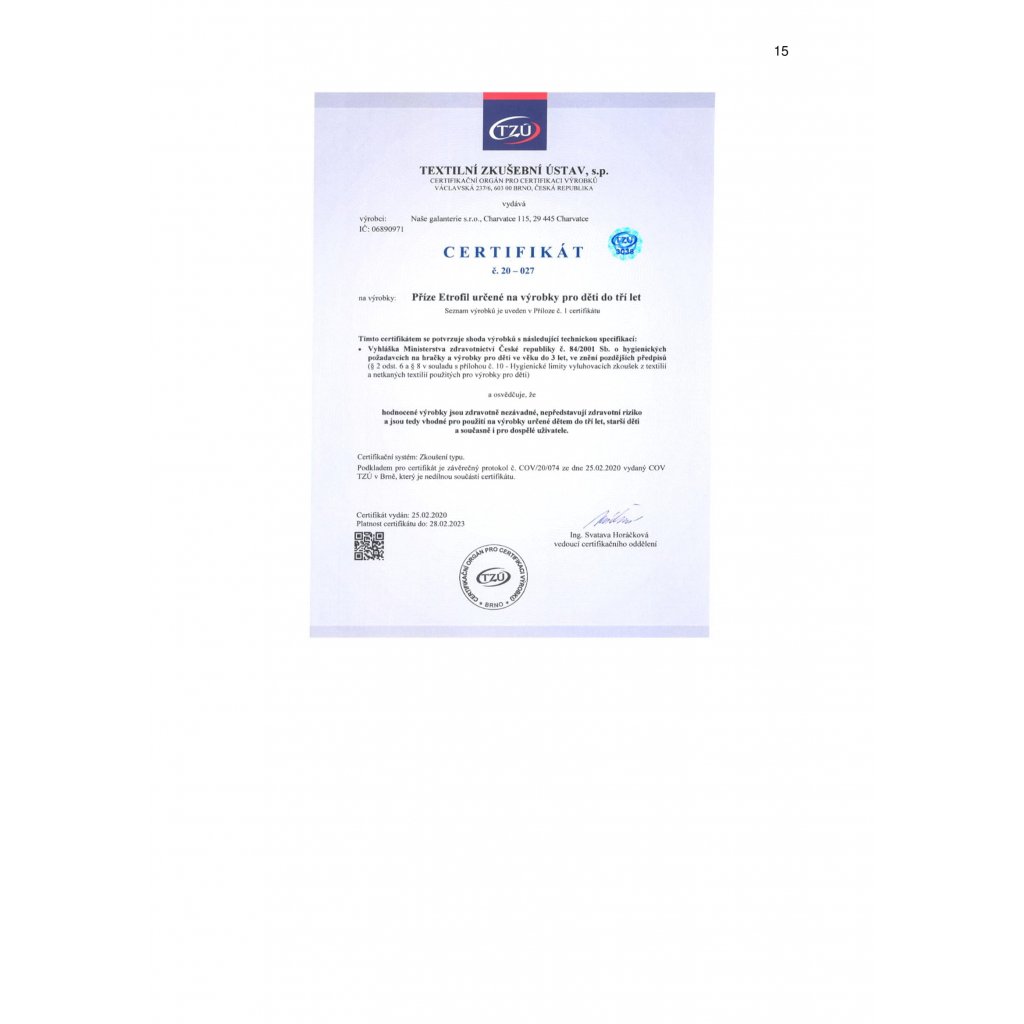 Výrobce získal pro tento materiál OEKO TEX standart 100, 1 CLASS. Příze je tedy vhodná pro použití i u dětí do 3 let.