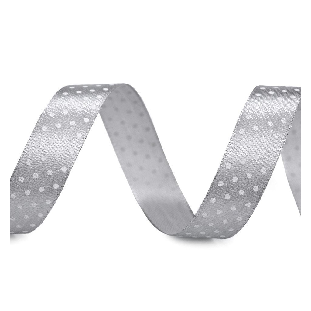 Saténová stuha 15 mm s puntíky balení 22,5 m světle šedá.