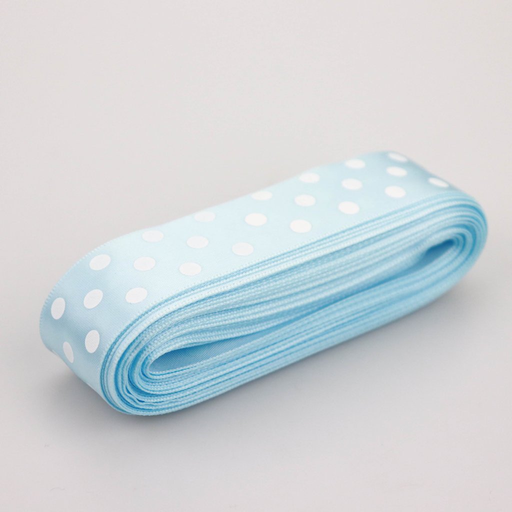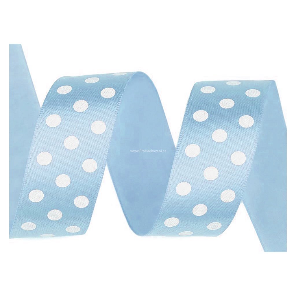 Saténová stuha 25 mm s puntíky 10 m světle modrá.