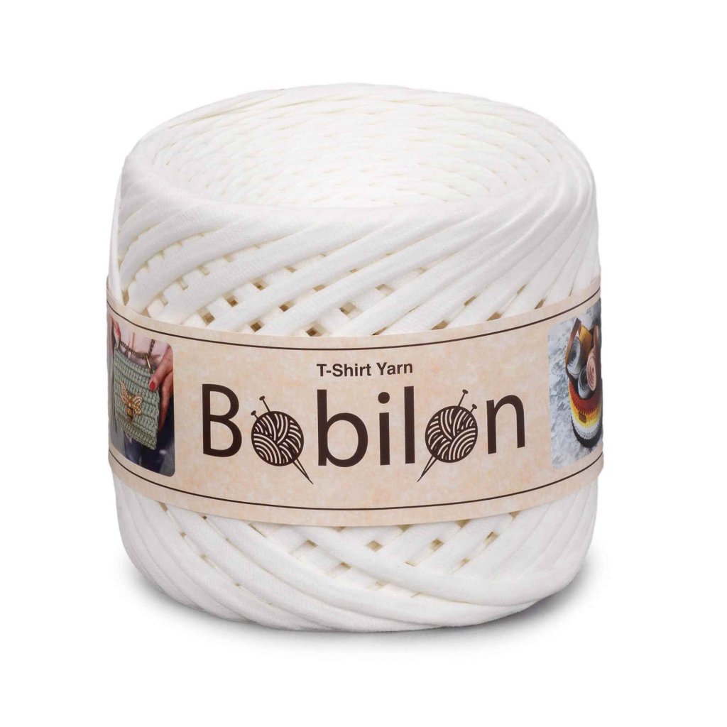 Bobilon medium je 100 % bavlněná textilní příze (T-Shirt Yarn), vyráběná z originálních kvalitních látek s pravidelným řezem proužků v celé délce (nejedná se o recyklát) bez uzlů, švů, dírek. Výsledný úplet je pravidelný a tvarově stálý.