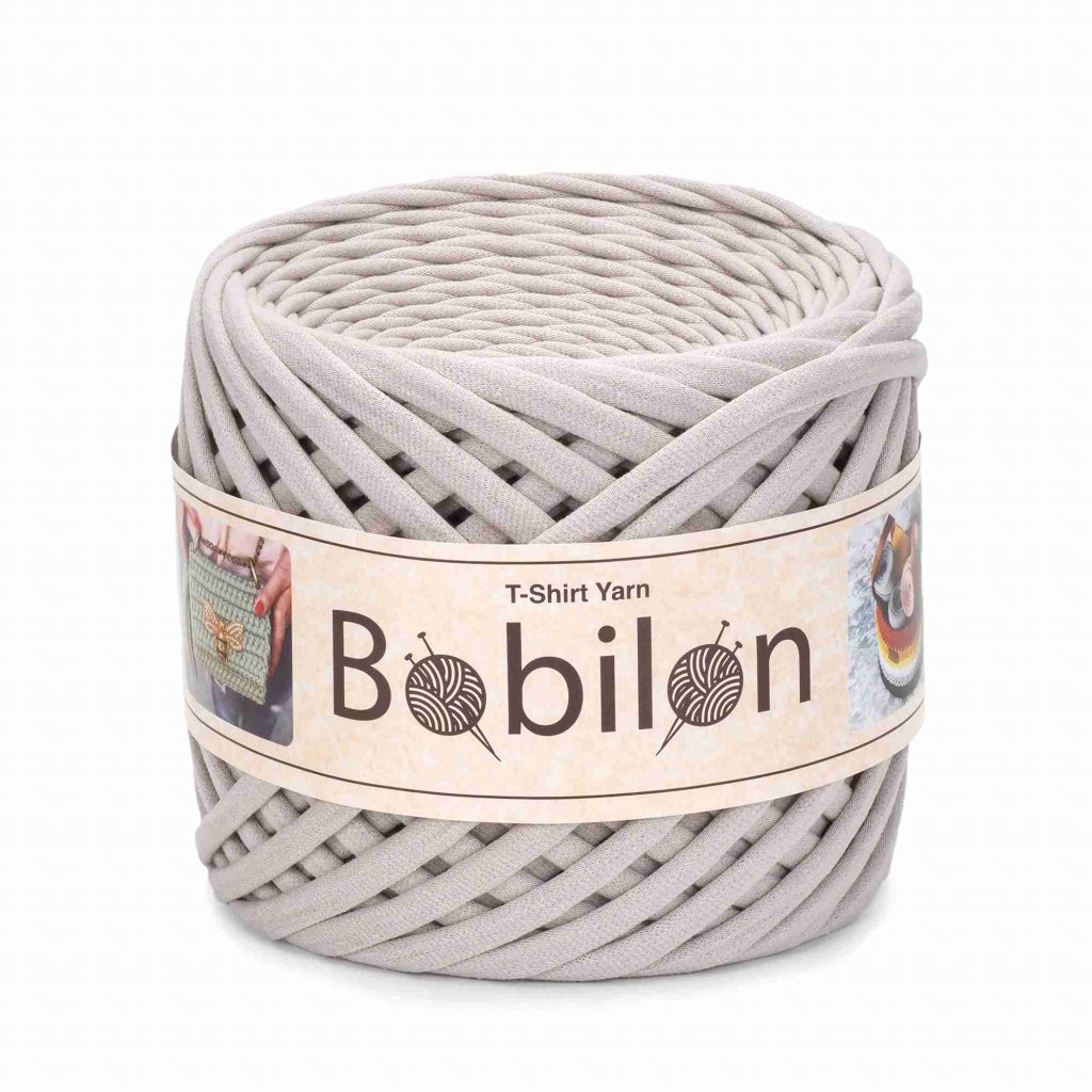 Bobilon medium je 100 % bavlněná textilní příze (T-Shirt Yarn), vyráběná z originálních kvalitních látek s pravidelným řezem proužků v celé délce (nejedná se o recyklát) bez uzlů, švů, dírek. Výsledný úplet je pravidelný a tvarově stálý.