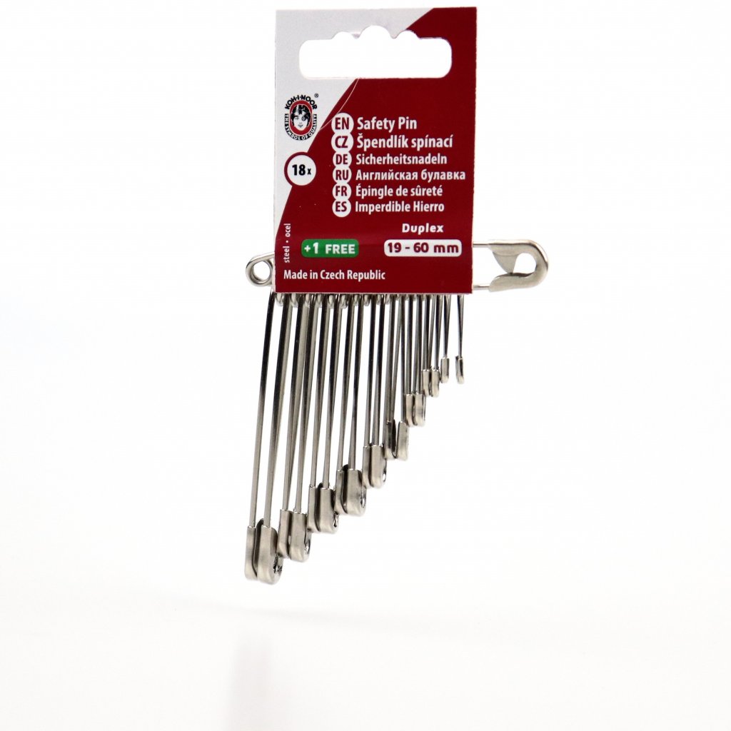 Špendlík zavírací nikl-9 velikostí. Balení: 18,+1 ks. Délka: 6cm, 5,5cm, 5cm, 4,5cm, 4cm, 3,5cm, 2,7cm, 2,2cm, 2cmSpínací špendlík je praktický pomocník do domácnosti a to nejen pro švadlenky.