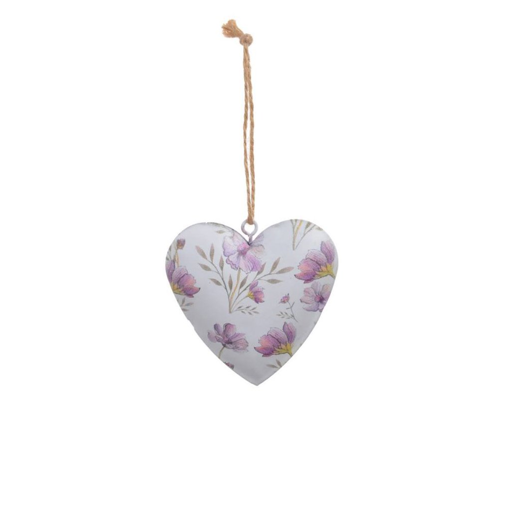 Krásná a jemná kovová dekorace ve tvaru srdce s motivem květin, která dodá vašemu domovu útulnou atmosféru.