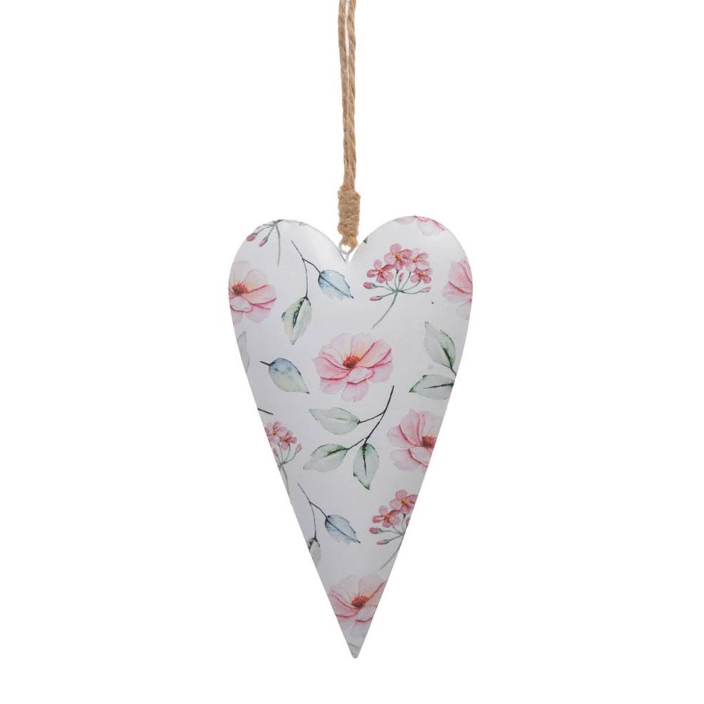 Krásná a jemná kovová dekorace ve tvaru srdce s motivem květin, která dodá vašemu domovu útulnou atmosféru.