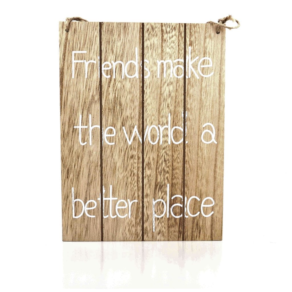 Dřevěná tabulka s nápisem Friends make the world a better place. Pěkná dekorace k zavěšení.