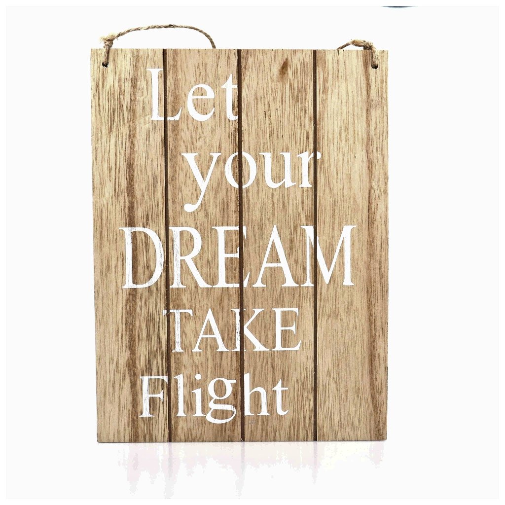 Dřevěná tabulka s nápisem Let your dream take flight. Pěkná dekorace k zavěšení.