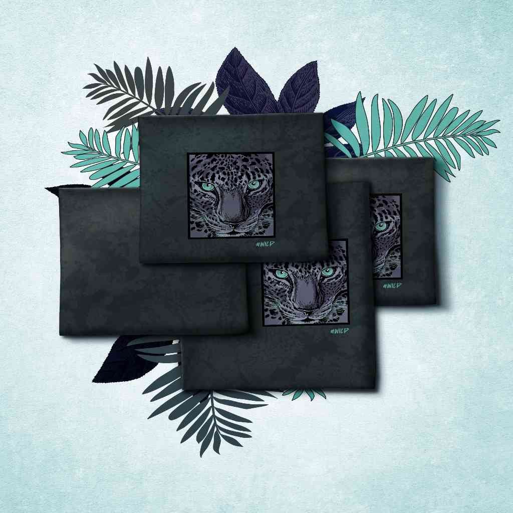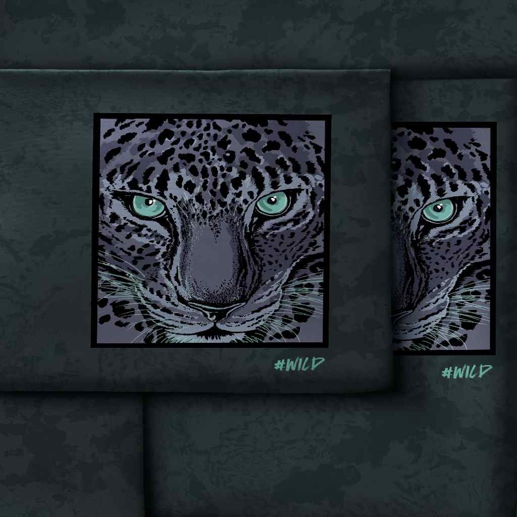 Panel z nepočesané teplákoviny s motivem hlava levharta.