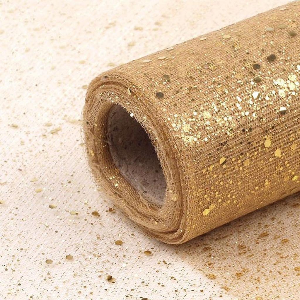 Tyl zlatý se zlatými glitry 20 cm, 10 m