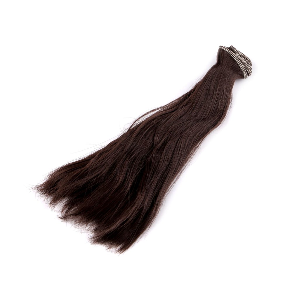 Rovné vlasy v barvě tmavě hnědé jsou vhodné k výrobě panenky. Umělé vlasy k našití dotáhnou vaše vyrobené postavičky k dokonalosti.
