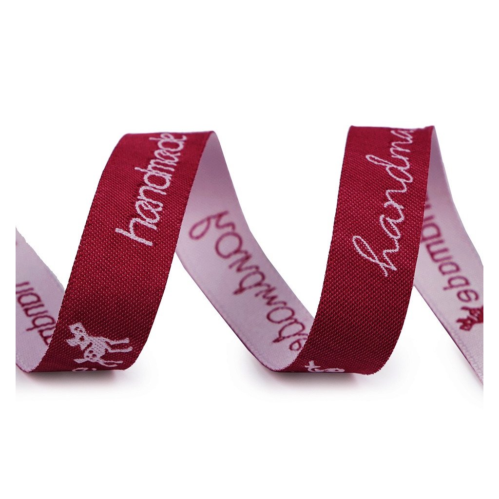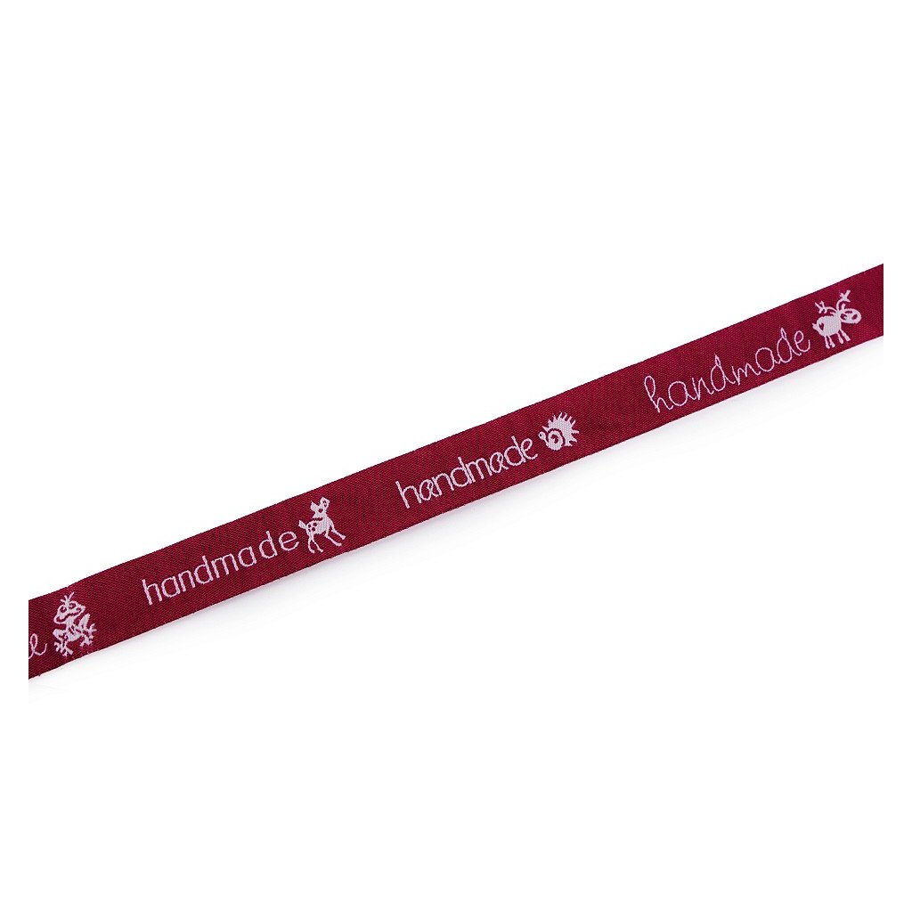 Vzorovka hand made bordó. Materiál: 100% polyester. Šíře: 16 mm. Cena za 1 m. Vzorovaná stuha s nápisem "handmade" je doplněna obrázky zvířátek (srnka, ježek, sob, žába), které se pravidelně střídají.