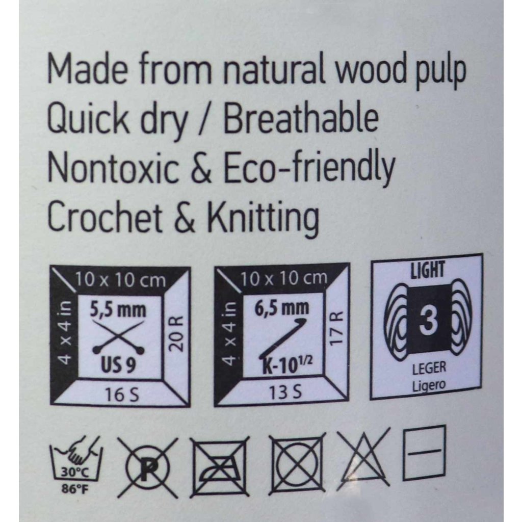Přízi lze prát v ruce na max. 30 °C, nežehlit, nesušit v sušičce, sušit ve vodorovné poloze, nebělit.